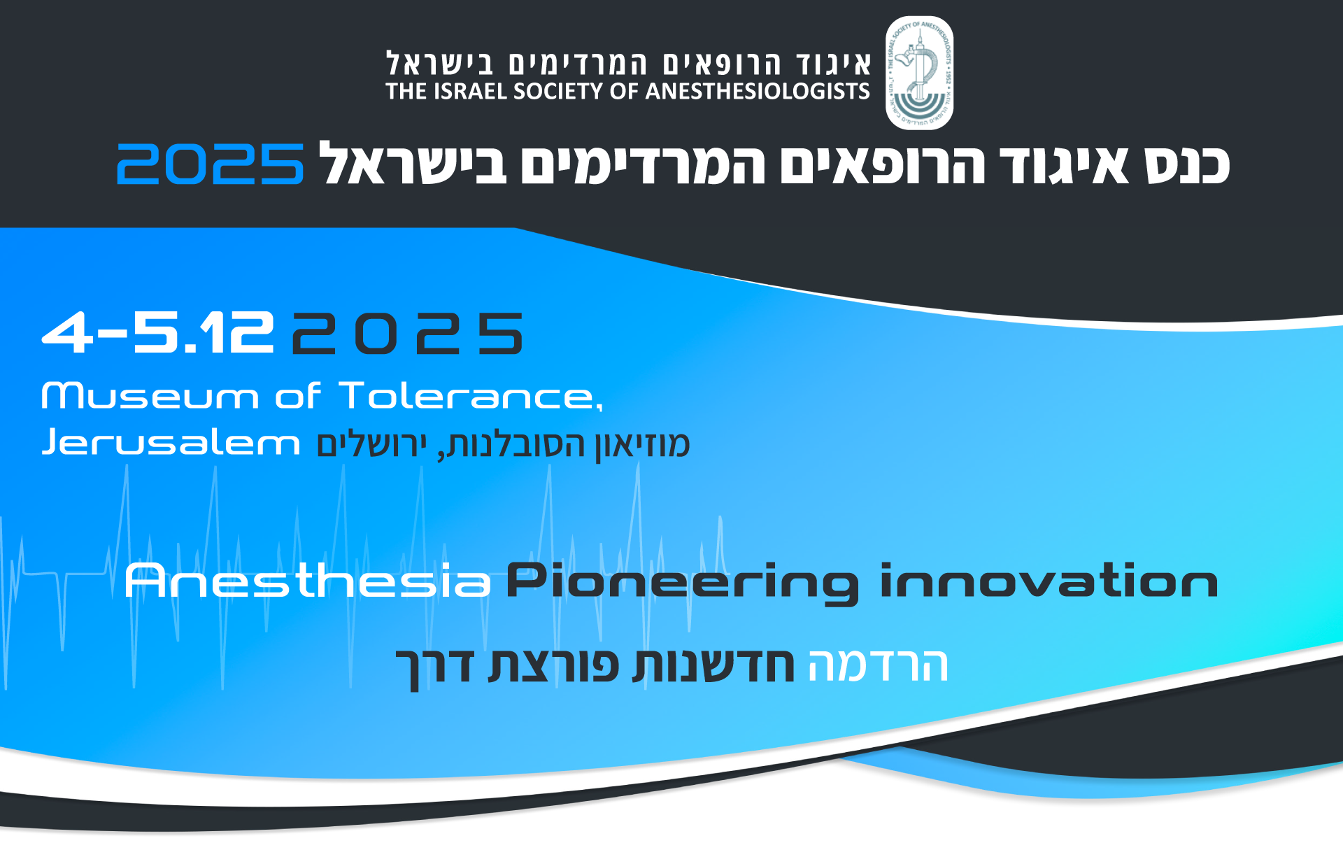 הכנס השנתי של איגוד הרופאים המרדימים בישראל יתקיים בתאריכים 4–5 בדצמבר, 2025, במוזיאון הסובלנות, ירושלים.